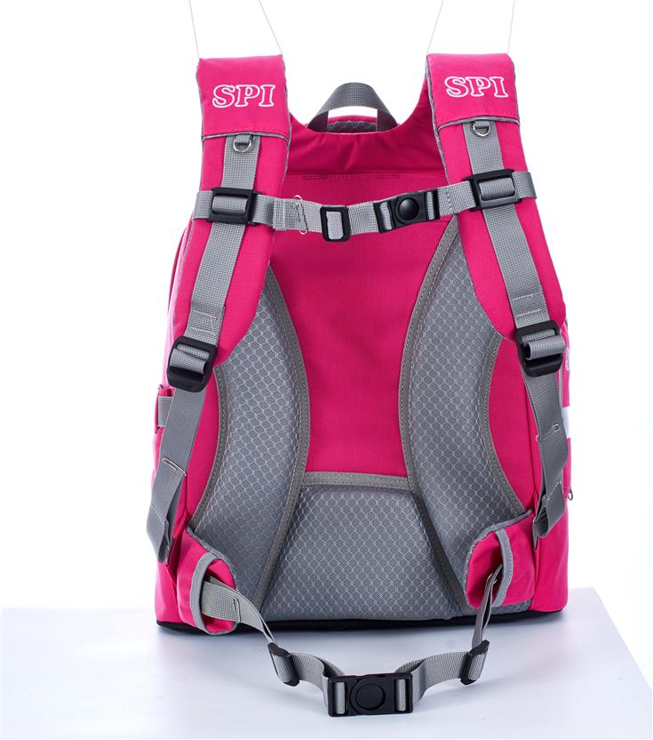 【功能】 1. 護脊纖維條, 保障孩子脊骨挺直  2. 內置底板, 分散壓力及增強承托力  3. 可上下調節的胸帶扣固定背包緊貼身體  4. 腰帶扣幫助固定背包減輕脊骨負重  5. 書包護背散熱功能極佳  6. 輕量級設計  7. 輕量級物料  8. 高反光物料提供安全保障  9. 防水